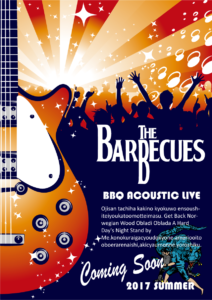 ザ・バーベキューズは夏のバーベキューでアコースティックライブを開催しました。
